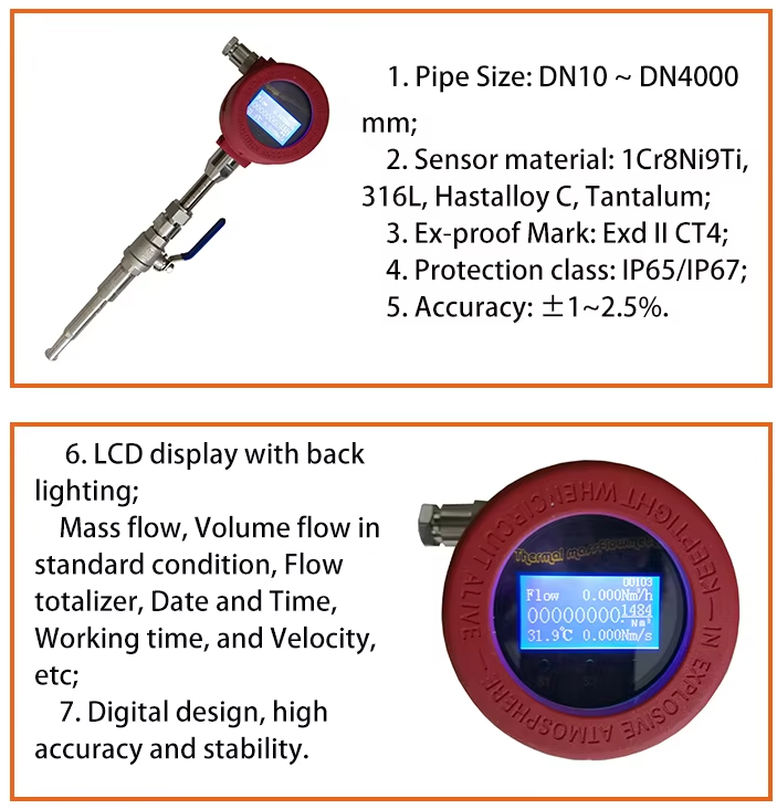 High Accurrcy Low Price Thermal Mass Flowmeter Insertion Oxygen CO2 Thermal Mass Gas Flow Meter