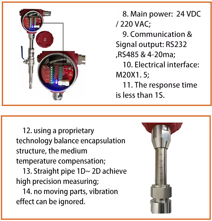 1.0% Precision SS316L inserted mode Thermal Gas Mass Flow Meter